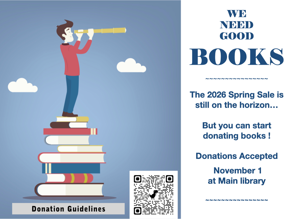 The Friends gratefully accepts monetary support year round; making a tax-deductible donation of any amount continues our goal of supporting the library's ability to service our entire community.